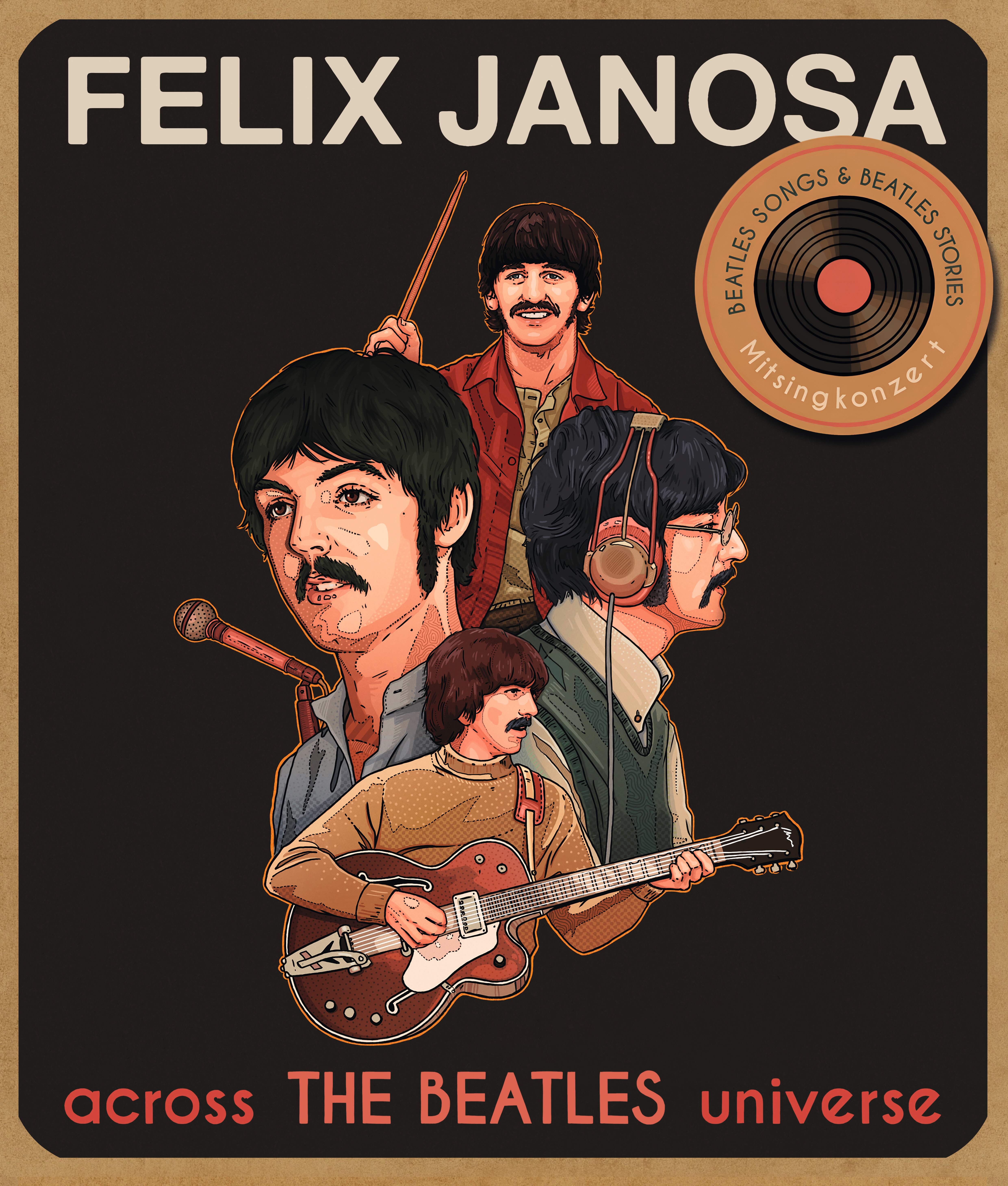 Ein ganz besonderes Beatles-Event bietet Komponist und Autor Felix Janosa (“Ritter Rost”) aus Stolberg. Neben einem vergnüglichen Marsch durch die Bandgeschichte der Fab Four aus Liverpool wird Felix Janosa gemeinsam mit dem Publikum viele große Beatles-Hits singen, „Beatles Poetry“ zum Besten geben sowie Interessantes wie Humorvolles aus seinen beiden Beatles-Büchern „Across The Beatles Universe“ und “Die Beatles, das Universum und der Rest”.